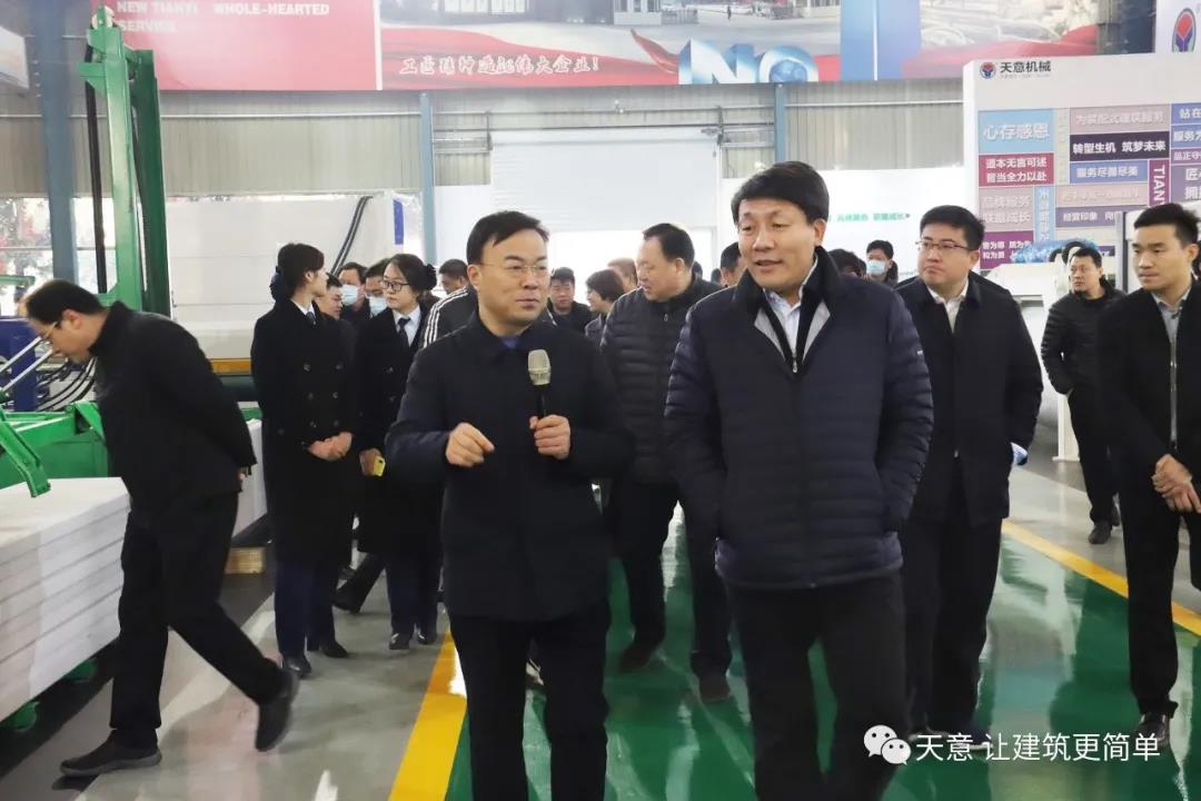 12月18日上午,鄒城市委常委、副市長欒濤一行蒞臨天意考察全市新舊動能轉(zhuǎn)換現(xiàn)場觀摩項(xiàng)目——裝配式建筑自動化PC生產(chǎn)線項(xiàng)目。兗州區(qū)委常委、區(qū)政府副區(qū)長、黨組副書記屈耀武,天意機(jī)械董事長劉洪彬陪同考察。