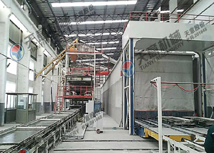 多功能墻板生產(chǎn)線,可生產(chǎn)“三明治”夾芯板,鋼邊框屋面板、樓面板,不帶面板復(fù)合板。生產(chǎn)線主要分為自動配料系統(tǒng)、攪拌系統(tǒng)、發(fā)泡系統(tǒng)、中央控制配電系統(tǒng)、輕質(zhì)混凝土布料系統(tǒng)、磨光系統(tǒng)、模具循環(huán)系統(tǒng)、養(yǎng)護(hù)系統(tǒng)、碼垛系統(tǒng)等部分組成。