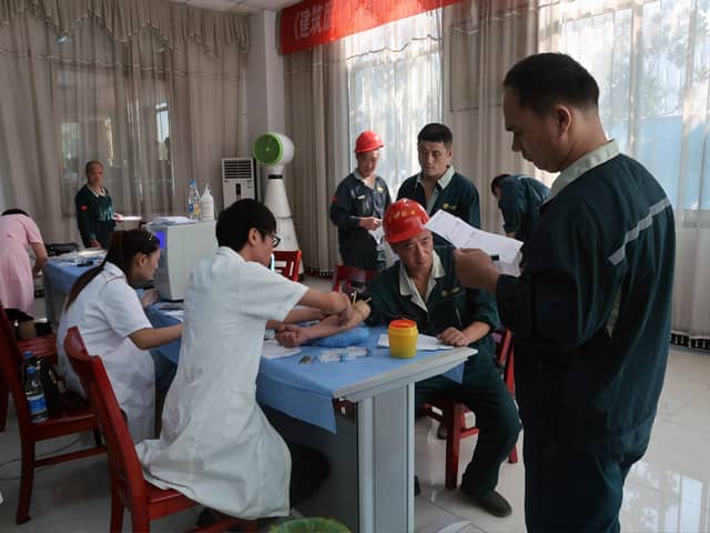 此次體檢項(xiàng)目有血常規(guī)、尿常規(guī)、內(nèi)科、外科、心電圖、胸透、量血壓等等。小伙伴們井然有序地排隊(duì)等待檢查,認(rèn)真配合,咨詢相關(guān)健康問題,體檢現(xiàn)場(chǎng)的同事們。